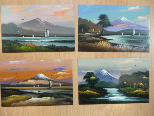 4 VINTAGE PAINTED POSTCARDS FROM JAPAN