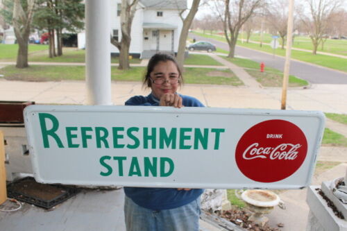 Vintage 1950''s Coca Cola Refreshment Stand Soda Pop 50" Metal Sign