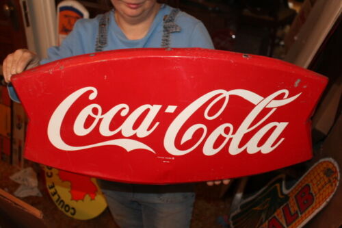 Title (ebay affiliate link): Vintage 1964 Coca Cola Fishtail Soda Pop Gas Station 26" Embossed Metal Sign