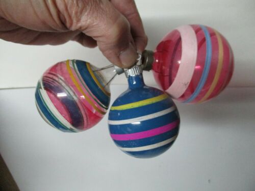 3 Vintage Glass UNSILVERED Christmas Ornaments - Stripes #2