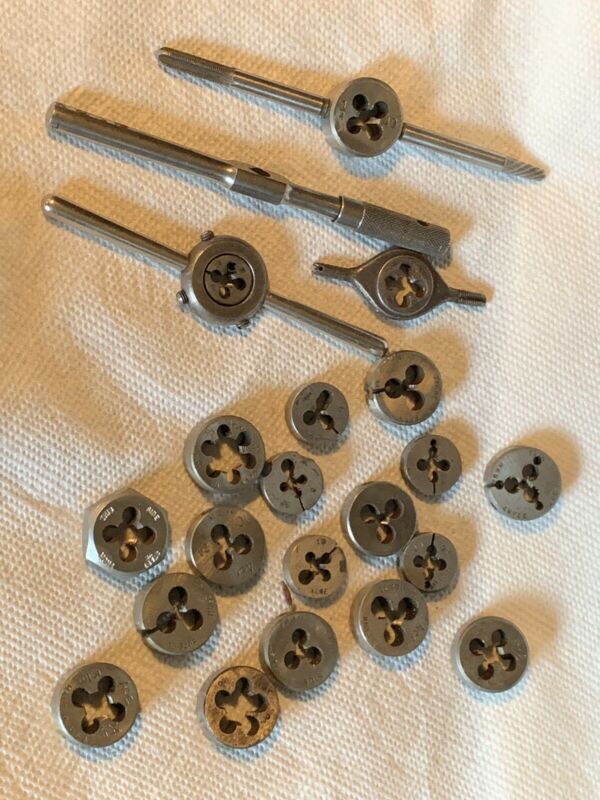 Title (ebay affiliate link): Huge Box Lot Antique/Vintage Machinist High Grade Steel Tap & Die Tools