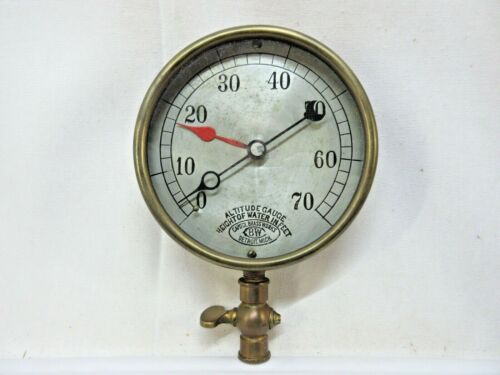 Antique Steam Pressure Gauge, Altitude Gauge, Steampunk Detroit Brass Works NICE