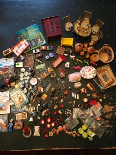 Title (ebay affiliate link): HUGE Lot Dollhouse Accessories Dish Sets Furniture Decoys Food Lamps Andirons ++