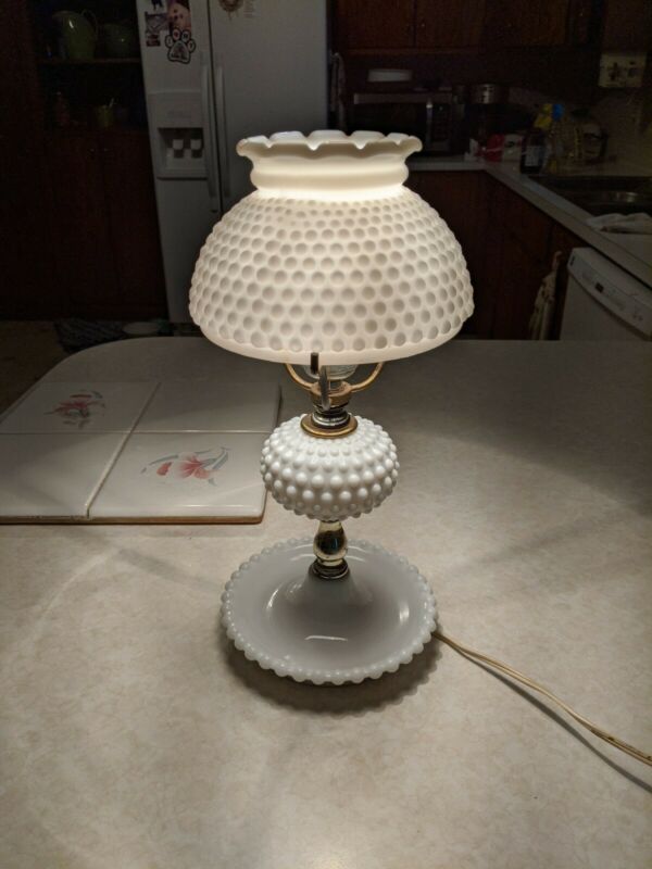 Vintage White Hobnail(?)Milk Glass Electric Table Lamp