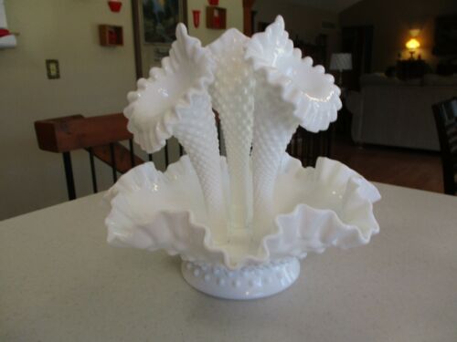 Title (ebay affiliate link): Fenton Milk Glass Hobnail Large Epergne , 9 1/4 " tall , 3 horns , 1960''s era