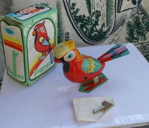 Title (ebay affiliate link): RARE Vintage Tin Wind Up 5.5" Toy Bird Parrot & Original Box Jumping Litho LOOK