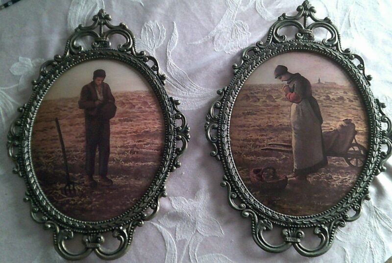 Title (ebay affiliate link): vtg antique set of 2 oval metal ornate frame convex bubble glass farmers praying