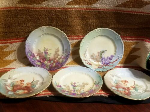 Title (ebay affiliate link): ANTIQUE VINTAGE DESSERT PLATES HND PAINTED FRUITS SHABBY CHIC BLUEBERRIES CHERRY