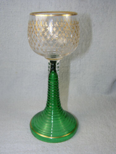 Title (ebay affiliate link): Set (7) German Roemer Green & Clear "Ring" Stems Wine Glasses - Etched
