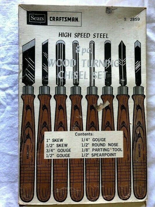 Title (ebay affiliate link): VTG Sears Craftsman 8PC Wood High Speed Lathe Chisel Tools 9-28521 Original Box