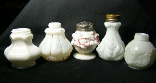 Title (ebay affiliate link): (5) Antique Victorian Opal Milk Glass Shakers - Molded Patterns