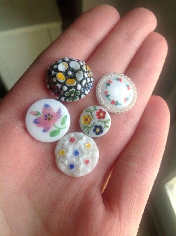Title (ebay affiliate link): Vintage Milk Glass Floral Button Lot Painted Flowers Heart Pink Red Yellow Blue