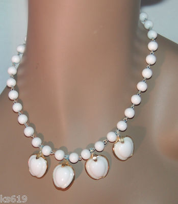 VINTAGE TRAFARI WHITE MILKGLASS CHOKER APPLE NECKLACE