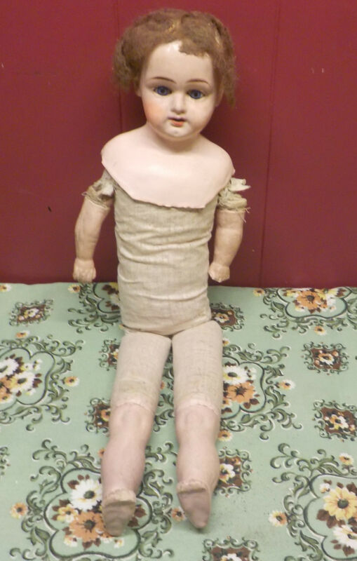 ANTIQUE DOLL CLOTH & BISQUE 20 "