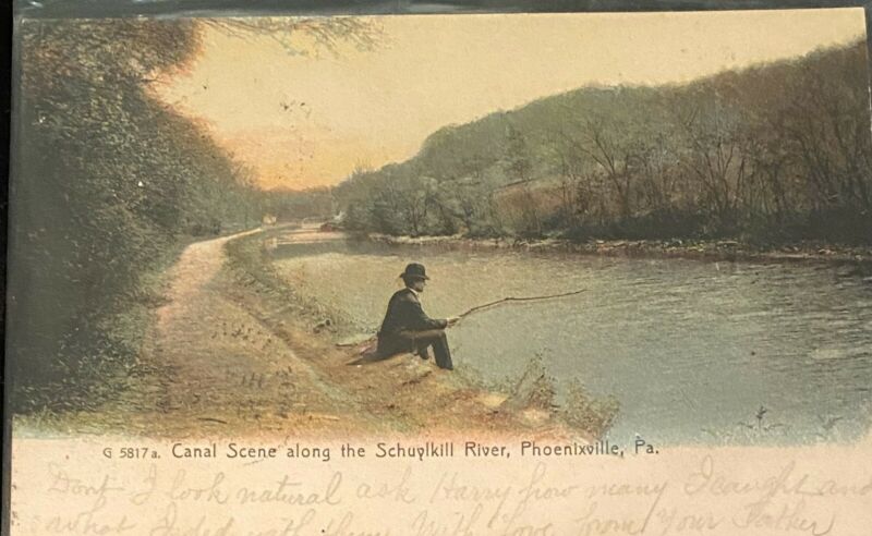 Title (ebay affiliate link): Phoenixville,Pa., Canal Scene W Man Fishing. 1908. Rotograph NYC/Germany.