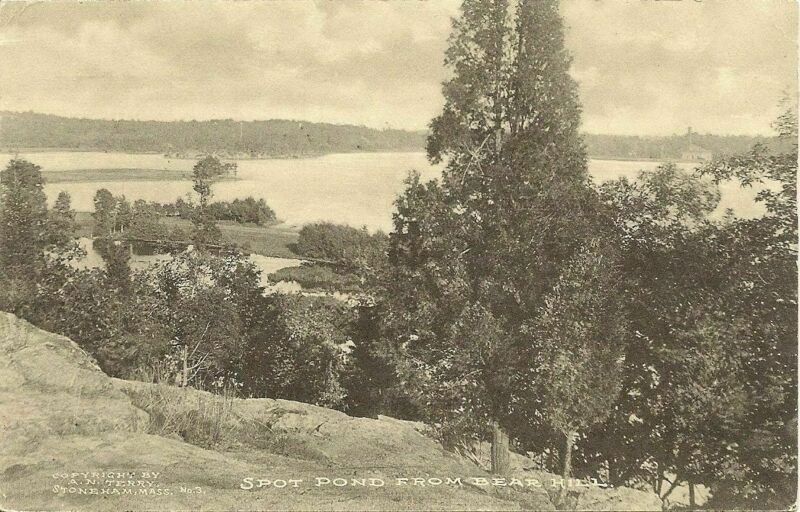 Melrose Malden Stoneham MA Spot Pond from Bear Hill Postcard #n876