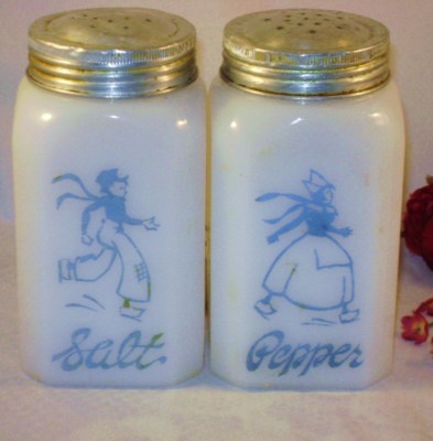 VINTAGE STOVE RANGE DUTCH MILK GLASS SALT & PEPPER SET