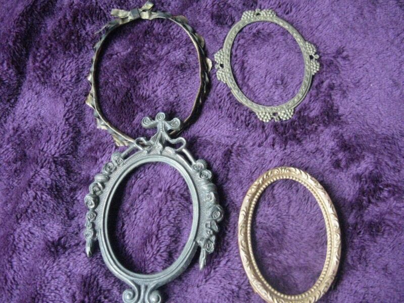ANTIQUE VINTAGE LOT OF 4 METAL PICTURE FRAMES ORNATE UNUSUAL