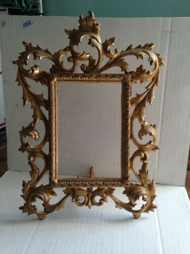 Antique Art Nouveau Gilded Metal Picture Frame Stand Up~Holds 4x6"