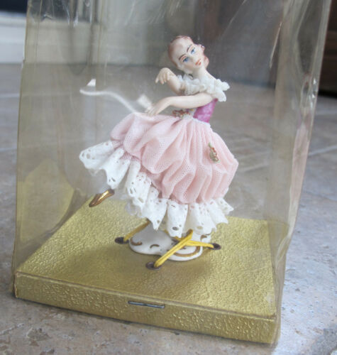 WOW RARE VINTAGE NEW Sandizell DANCING Figurine, Dresden Lace Skirt, W.Germany