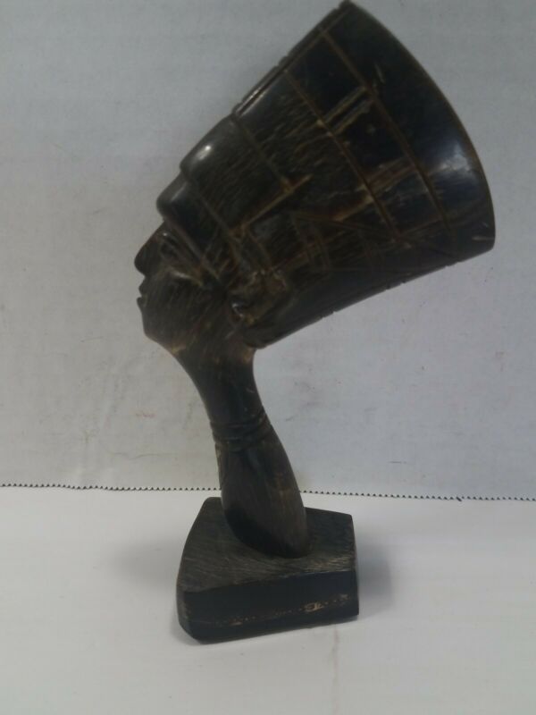 Vintage Hand-Carved Wooden Egyptian Head Figurine 6 Inches Tall
