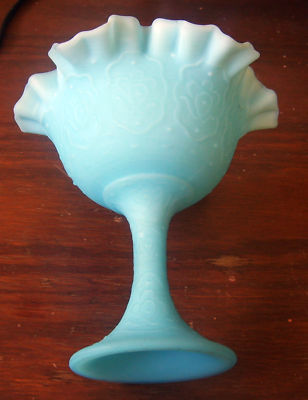 FENTON BLUE MILK GLASS CANDY DISH 7"