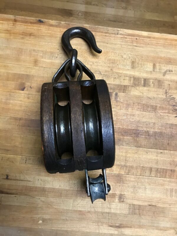 Title (ebay affiliate link): Antique Large Nautical 2 Chestnut Wood Block Tackle Double Pulley CO 7 Marine