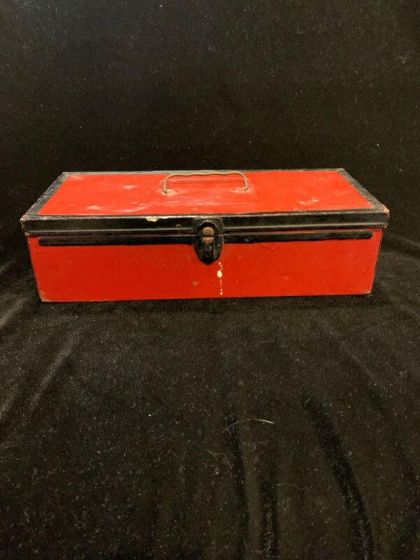 Title (ebay affiliate link): VINTAGE RED PAINTED METAL TOOLBOX TOOL BOX WITH HANDLE & INTERIOR TRAY