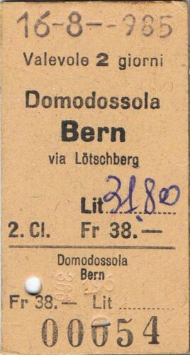 Title (ebay affiliate link): Railway tickets Italy Switzerland Domodossala to Bern second class single 1985