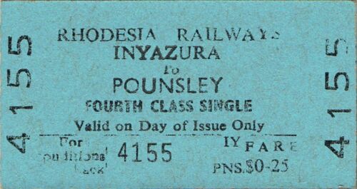 Title (ebay affiliate link): Railway tickets Rhodesia RR Inyazura to Pounsley fourth class single