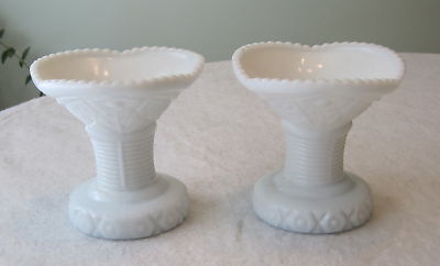 2 Vintage E. L. Smith Milk Glass Candle Holders