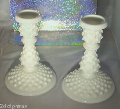 FENTON OLDER HOBNAIL MILK GLASS CANDLESTICK HOLDERS