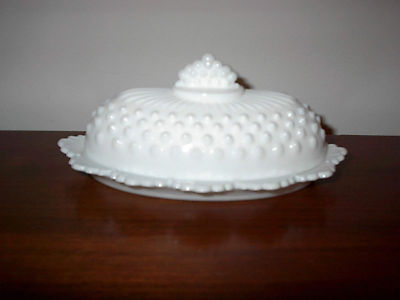FENTON HOBNAIL MILKGLASS BUTTER DISH WITH COVER