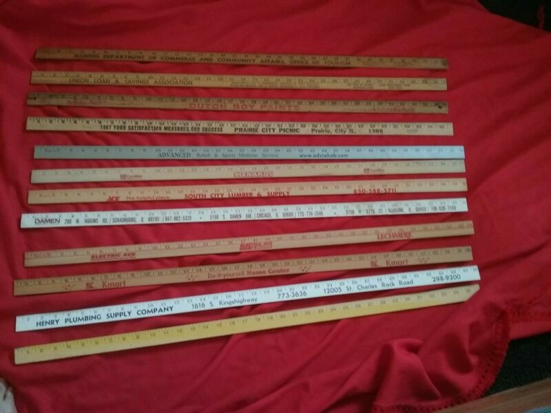 Lot of 12 advertising yardsticks some old
