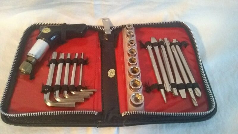 VINTAGE TOOL SET BLACK LEATHER CASE RATCHETING SCREWDRIVER HANDLE ALLEN WRENCHES