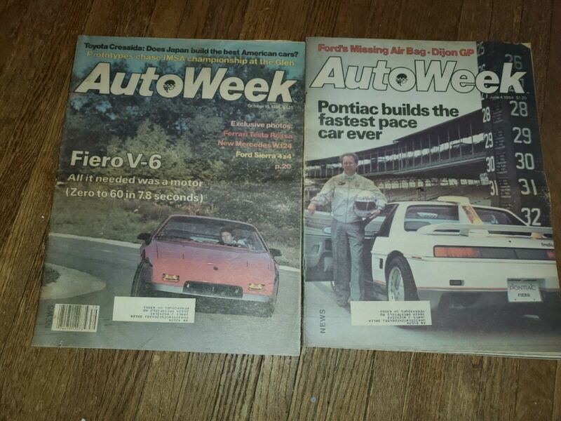 1984 Auto Week Magazine lot of 2 w/Pontiac Fiero cover Indy 500 pace car 1985 GT