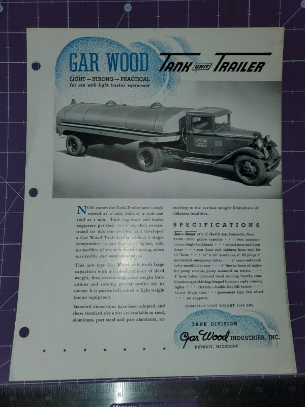 Title (ebay affiliate link): 1935 Gar Wood Industries Tank unit Trailer brochure/Flyer/Ford Benzol