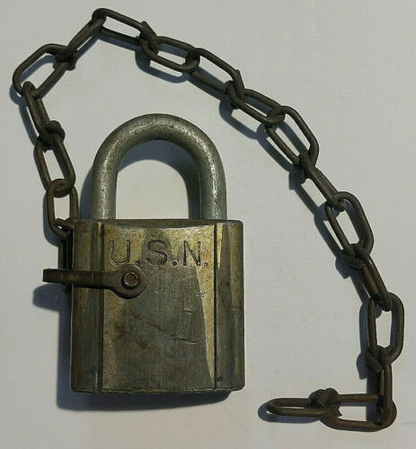 Title (ebay affiliate link): Vintage U.S.N. Navy Military Padlock Chicago Lock Co with Chain Hardware, no key