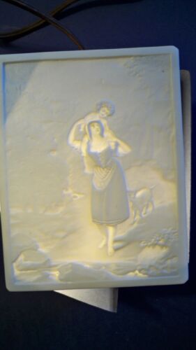 KPM lithophane Woman holding Child on Shoulders with lamb following