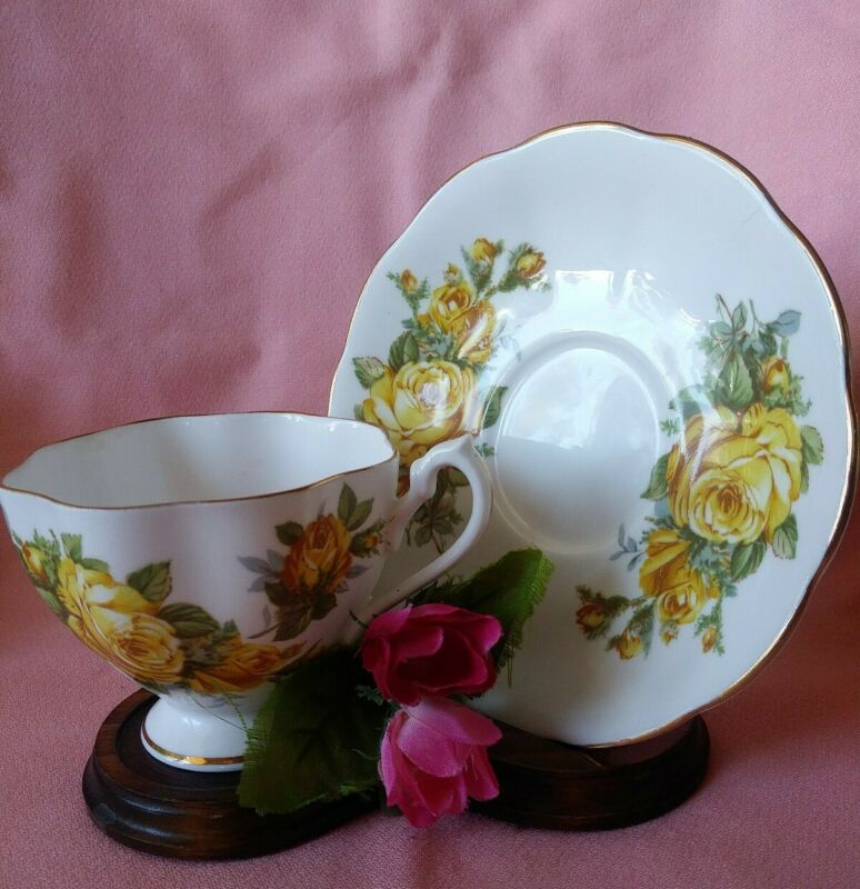 Vintage Yellow Roses Bone China Tea Cup & Saucer