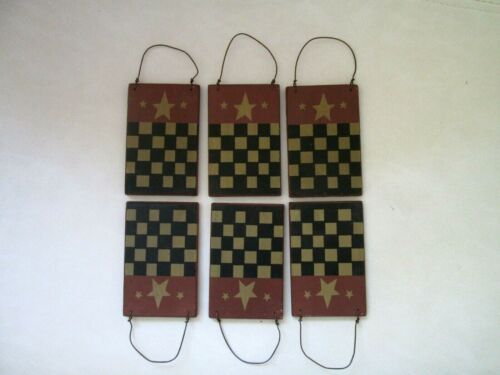 Title (ebay affiliate link): 6 primitive wood game board ornaments hanging gameboard checker chess Christmas
