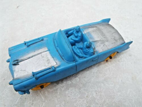 Vtg 1958 Blue Cadillac Convertible with yellow tires Auburn Rubber Toy Car #504