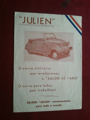 RARE 1949 FRANCE FOURGONNETTE CAR JULIEN PORTUGUESE ADVERTISING BROCHURE