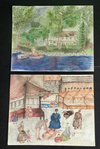 Title (ebay affiliate link): Lot Folk Art Pastels Paintings 19thc Market Scene Old Estate