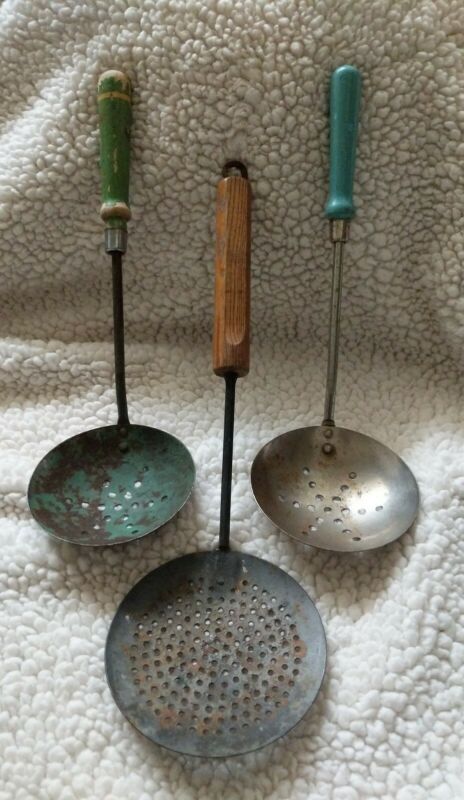 Title (ebay affiliate link): Primitive Farmhouse Kitchen Wooden Handle Slotted Ladle Spoon