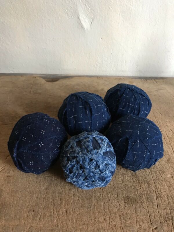 Title (ebay affiliate link): 5 BEST Big Antique Handmade Rag Rug Balls Indigo Blue Calico Textile AAFA LAST