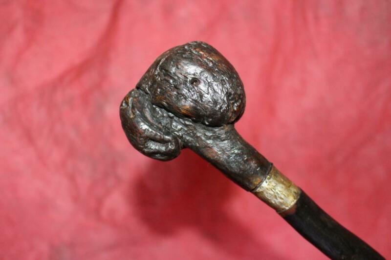 Amazing Early Primitive Huge Knob Irish Shillelagh W/Silver Collar & Brass Tip
