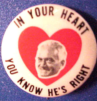 HEART RIGHT Button GOLDWATER Pin 1964 Johnson Campaign