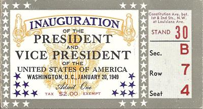 Title (ebay affiliate link): Ticket to Inauguration of Harry S. Truman Jan 20, 1949