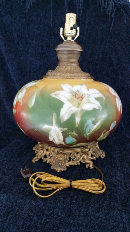 Title (ebay affiliate link): STUNNING Antique Hand Painted Gone With the Wind LARGE Oil Lamp Conv to Electric
